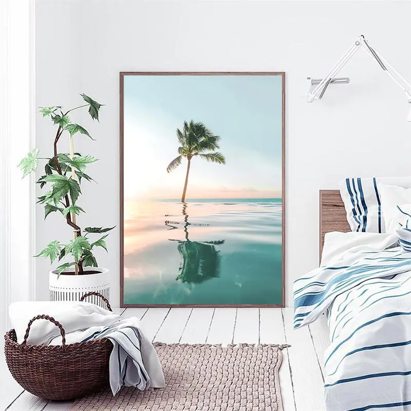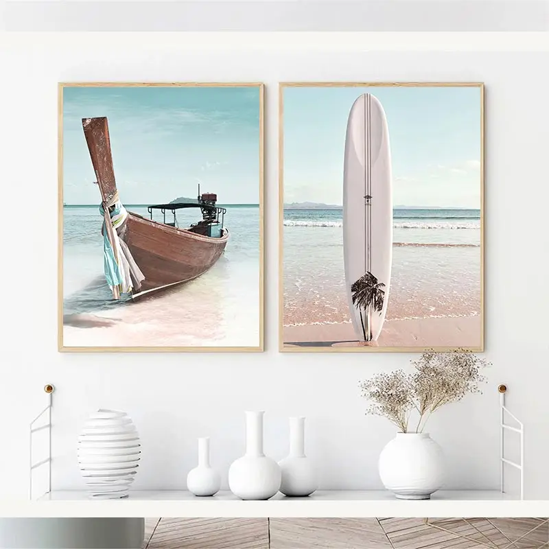 Beach Scenery Poster Nordic Wall Art Decorative Picture Tropical Sea Surfboard Bus Palm Tree Boat Canvas Painting for Home Decor