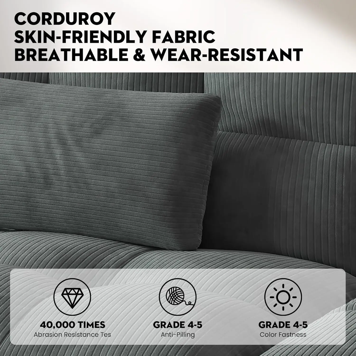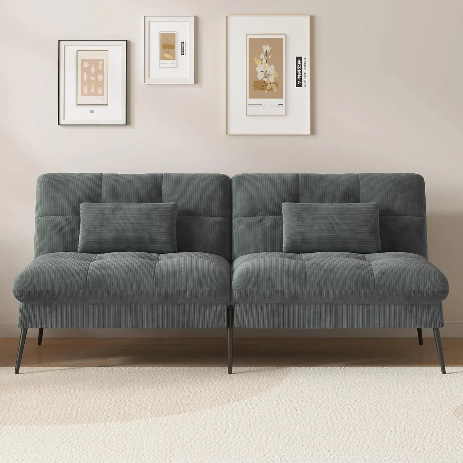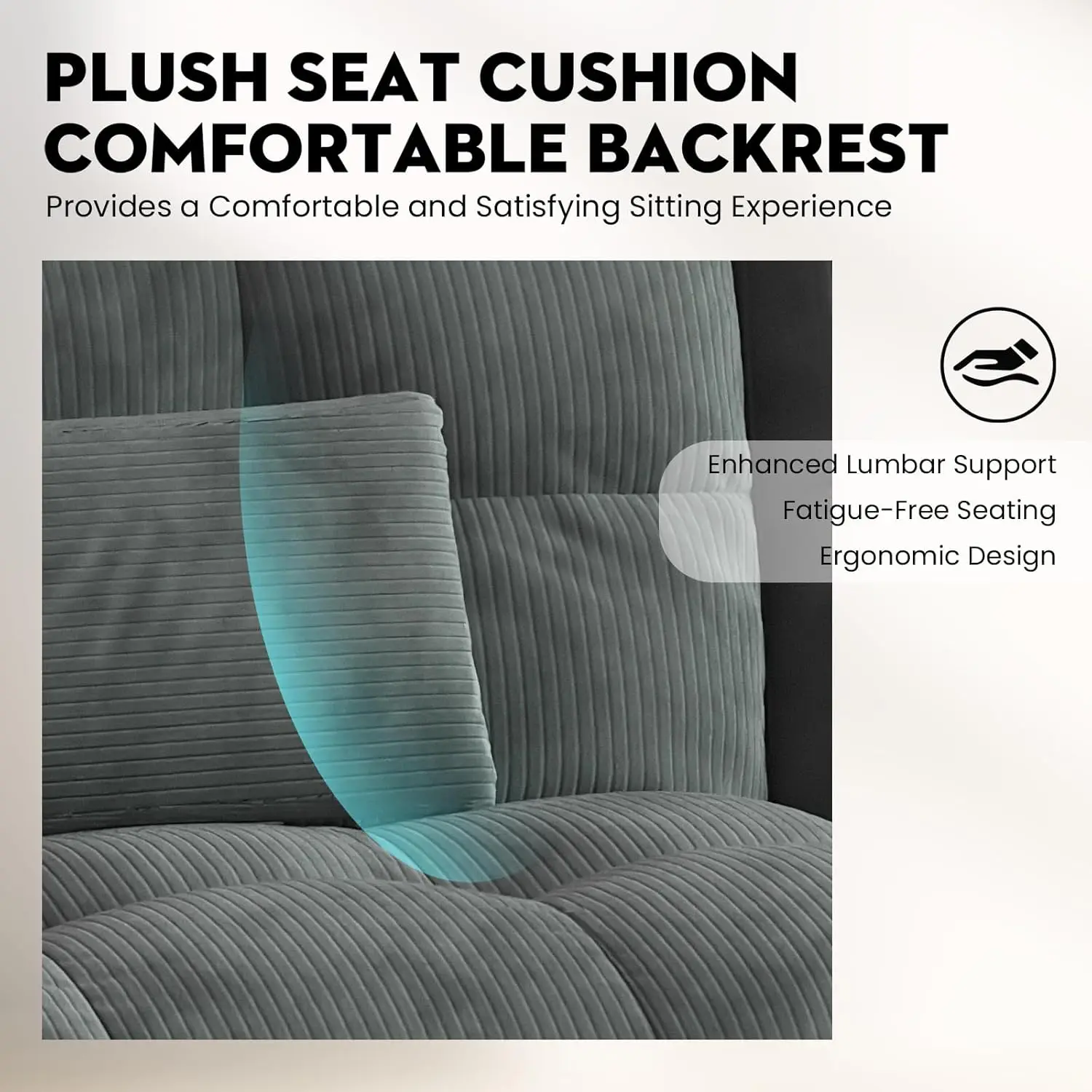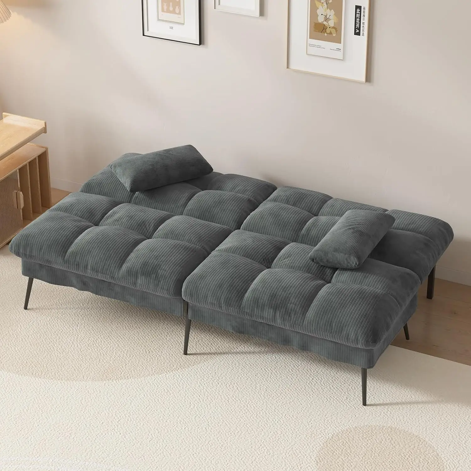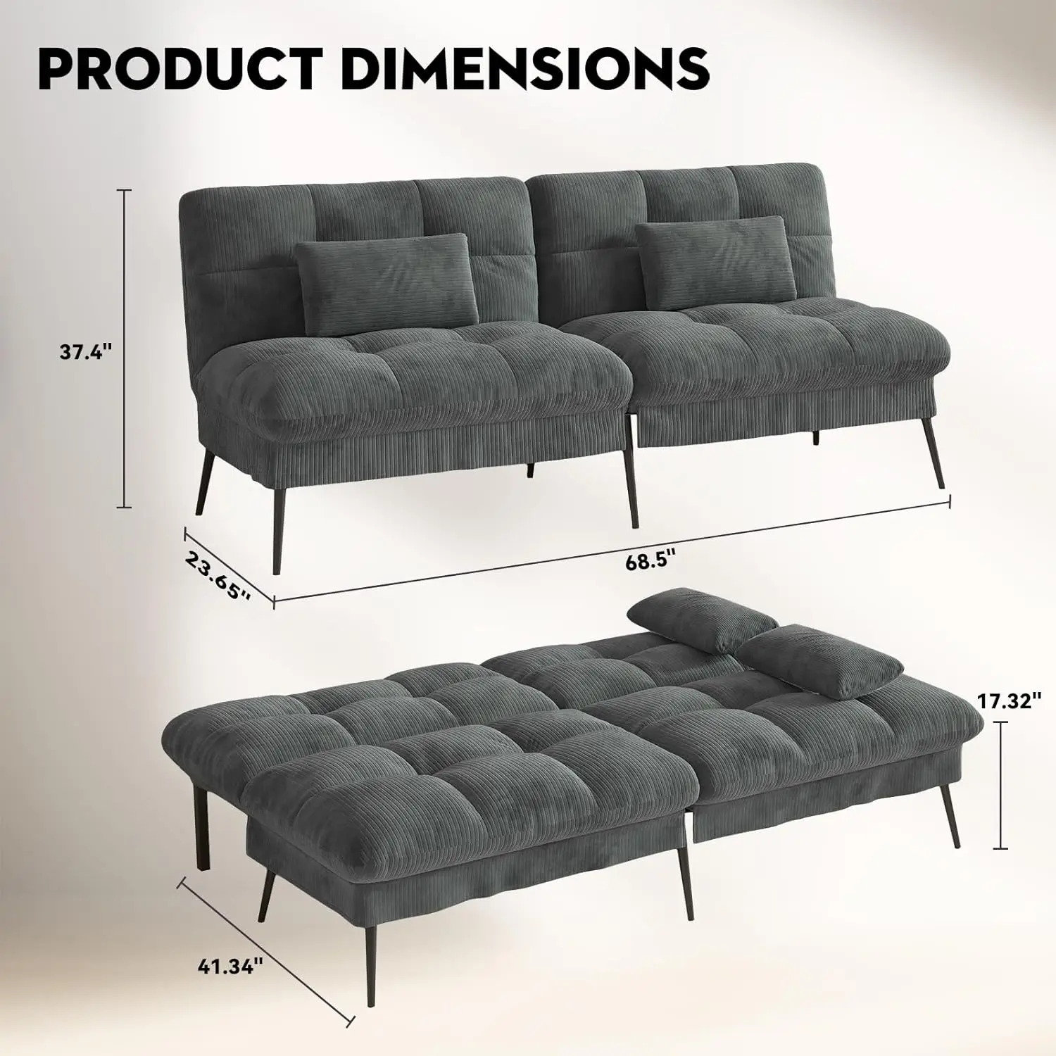 Convertible Futon Sofa Bed, 68" Corduroy Futon Couch with Adjustable Backrest, Folding Futon Loveseat for Living Room